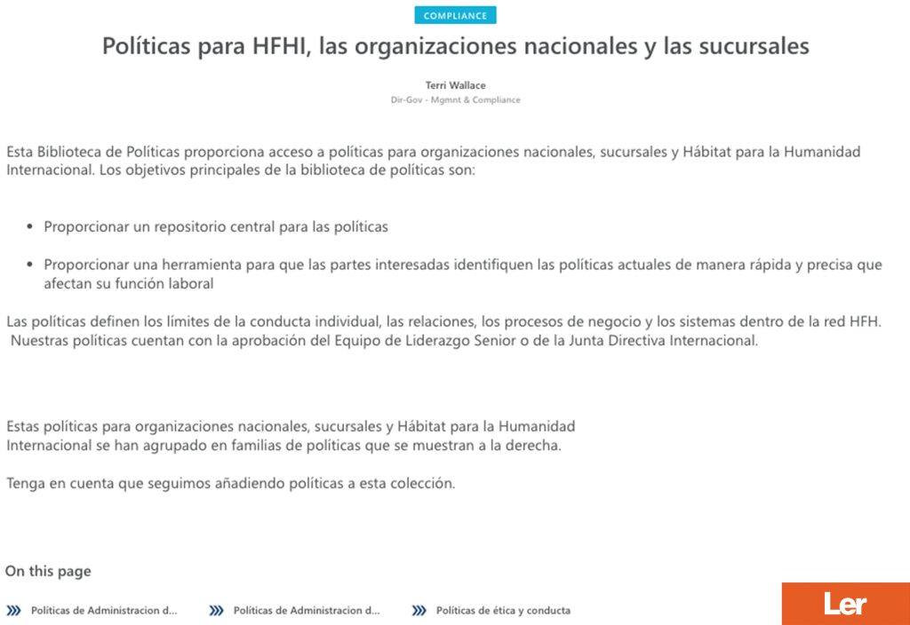 Documentos chave para LAC Missão, visão e princípios Plano 50 por 50 Versão completa Estrutura estratégica em espanhol Versão resumida em espanhol Formato de bolso em espanhol Introdução ao plano estratégico básico Resumo das prioridades estratégicas do “50 para 50” em espanhol Perguntas frequentes sobre o “50 para 50 em espanhol” Políticas institucionais